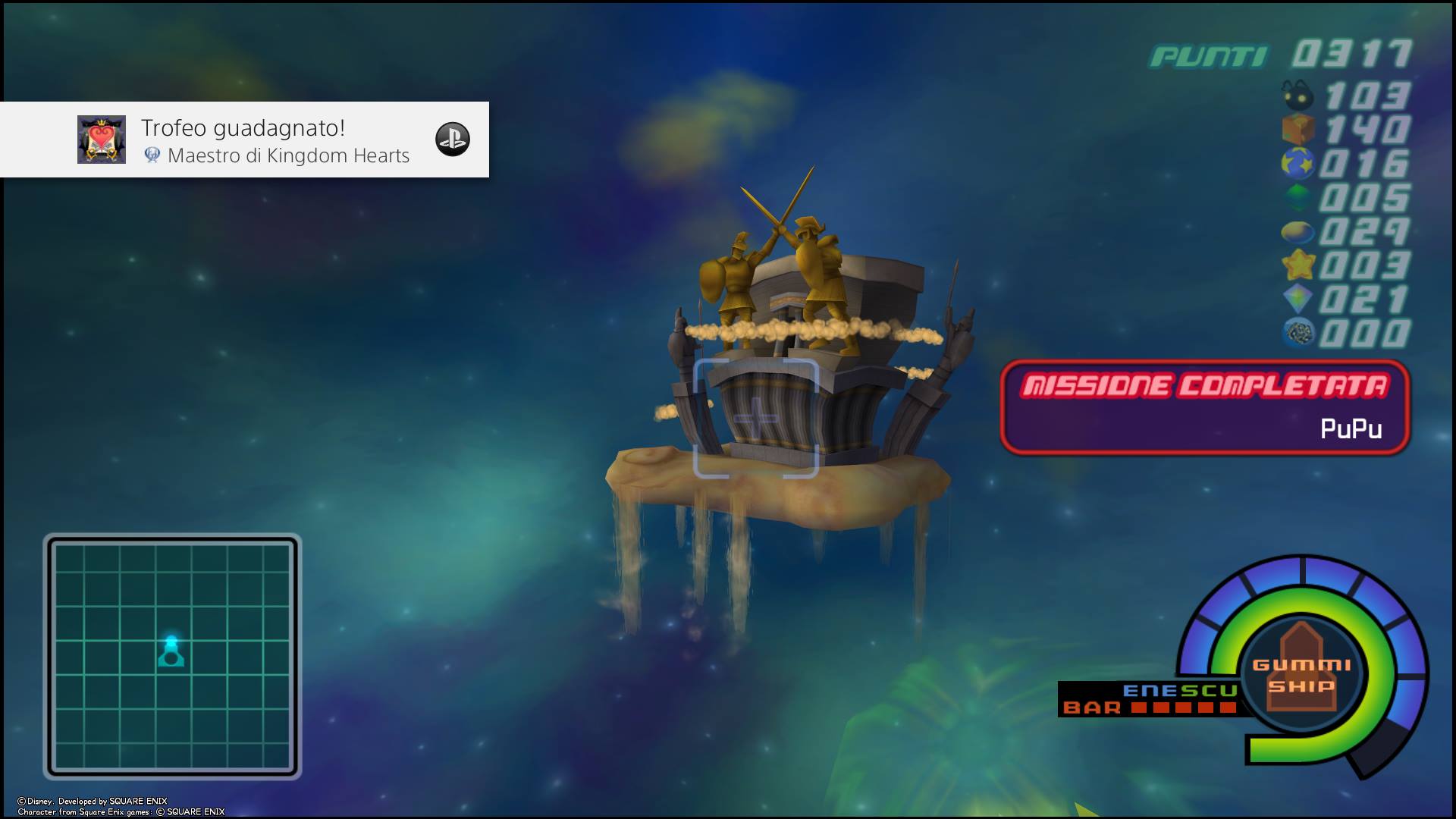 Le probabilità aumentano per ogni Gigashadow ucciso (non contano quelli morti perché sono esplosi dalla “gioia” dopo aver colpito Sora) - Pietra Mithril: Anfoscorpio (I Cancelli Reali, Agrabah)