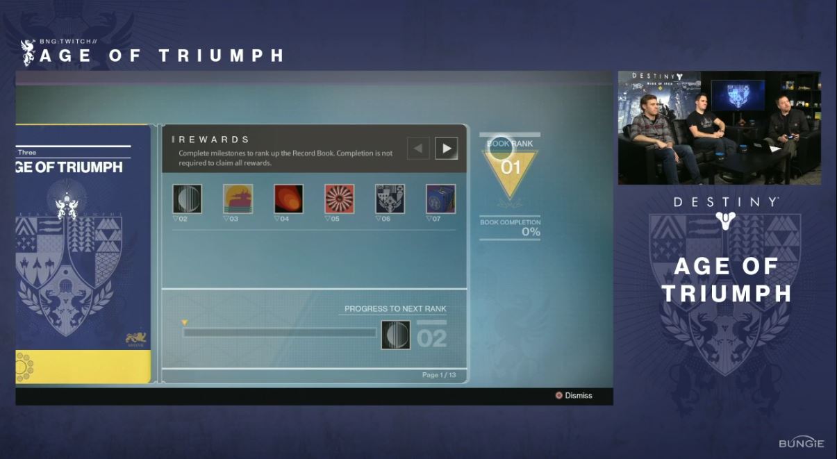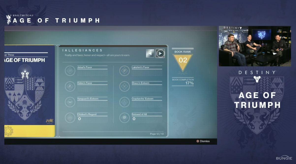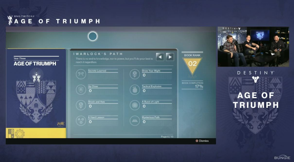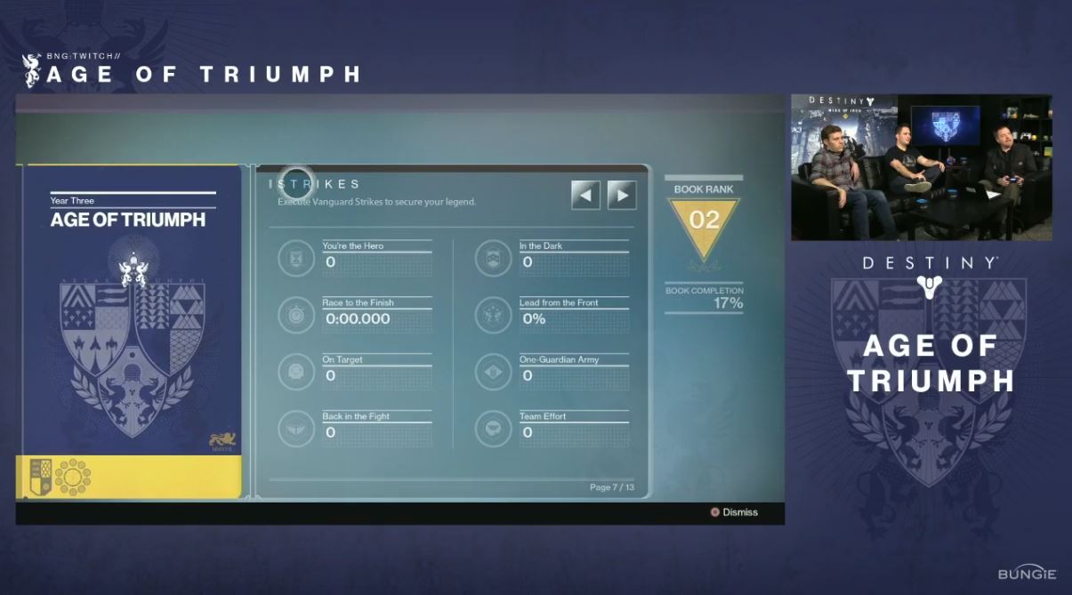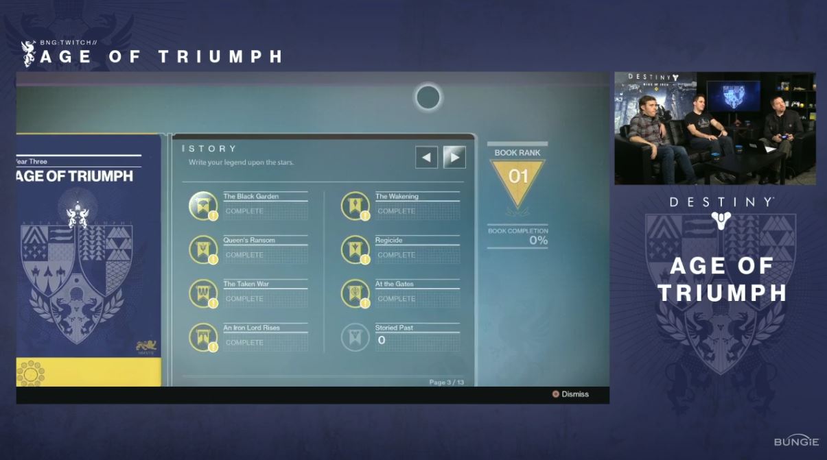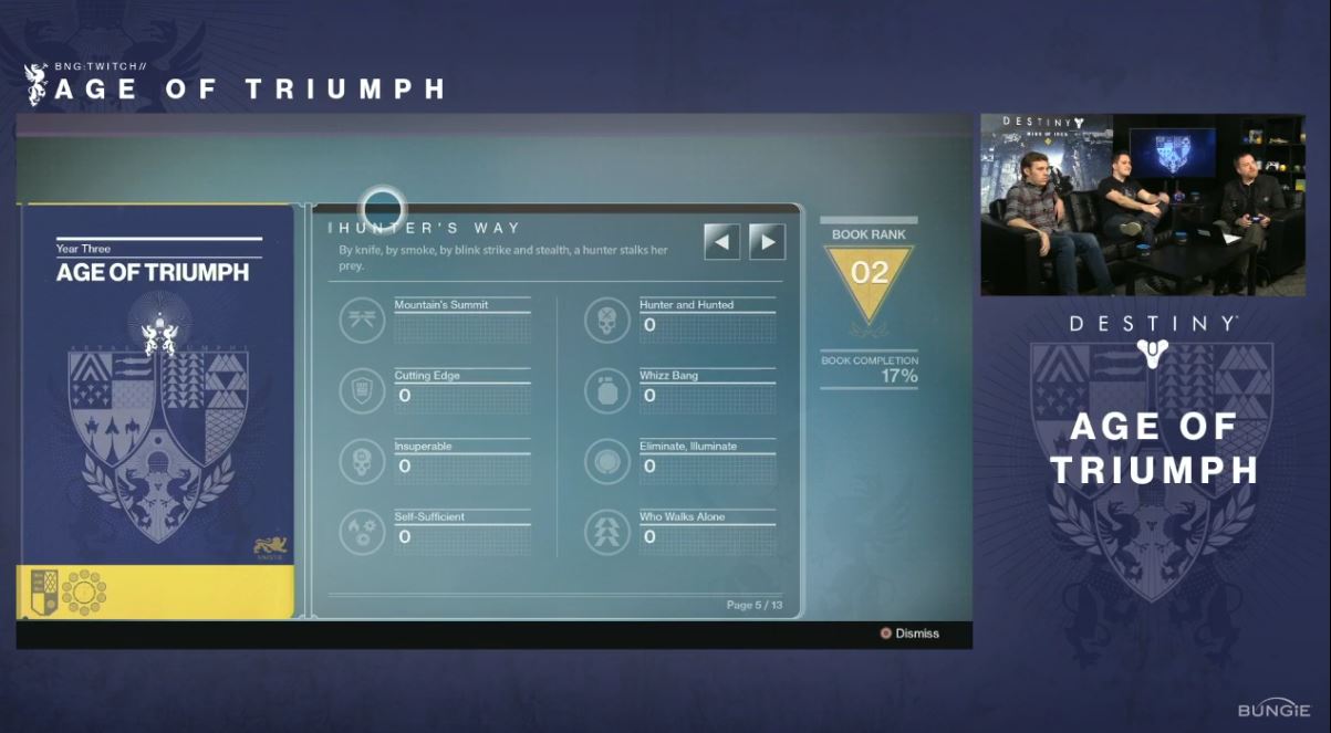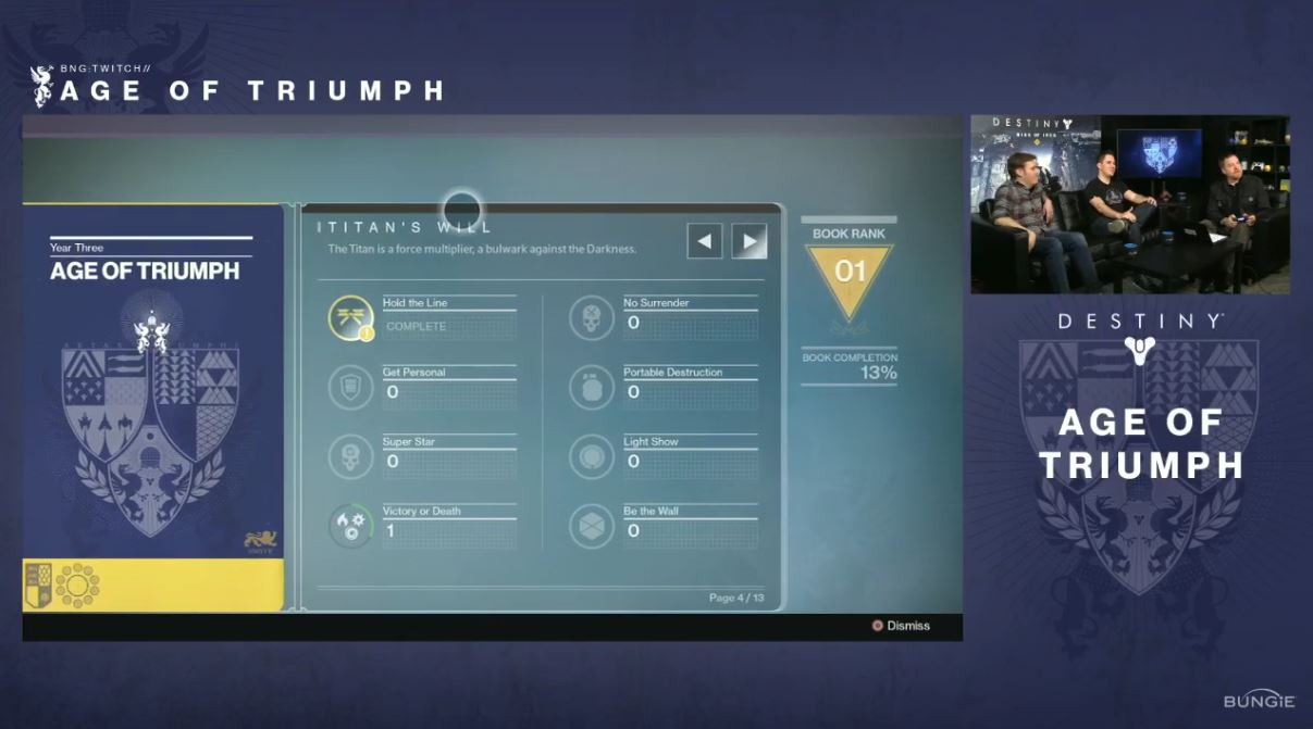In questa pagina la Bungie ha deciso di commemorare tutti i Player che hanno giocato o completato un obbiettivo in un determinato momento del passato di Destiny!